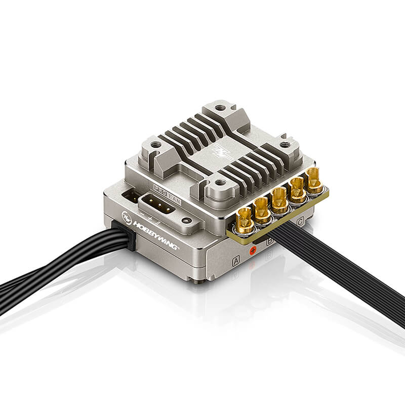 The aluminium casing and reticular heat sink combined with the HOBBYWING patented copper heat-conductive plates which are attached to the MOSFET board allows the internal heat to be quickly transferred to the heat sink for dissipation. With the high-performing detachable smart stop&start cooling fan, a highly reliable heat transfer system for maximum cooling is accomplished.