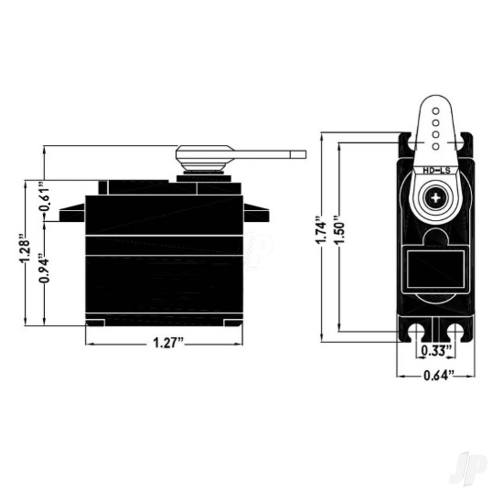 Watch out, here it comes! Our new high voltage, coreless HS-7245MH servo delivers exceptional speed and torque in a compact package. Built with an efficient coreless motor optimised for 7.4V operation and heavy-duty metal gear train with dual ball bearings, this high-end mini servo delivers unbridled performance just like its brother, the HS-7235MH.Whether you are flying mid-size gas and electric airplanes, 500-550 electric helis, or driving 1:12th scale on-road racers and 1:18th scale rock crawlers, the full-size muscle of this servo will make you the master of your RC domain.Exceeding Your Expectations Is What We Do!