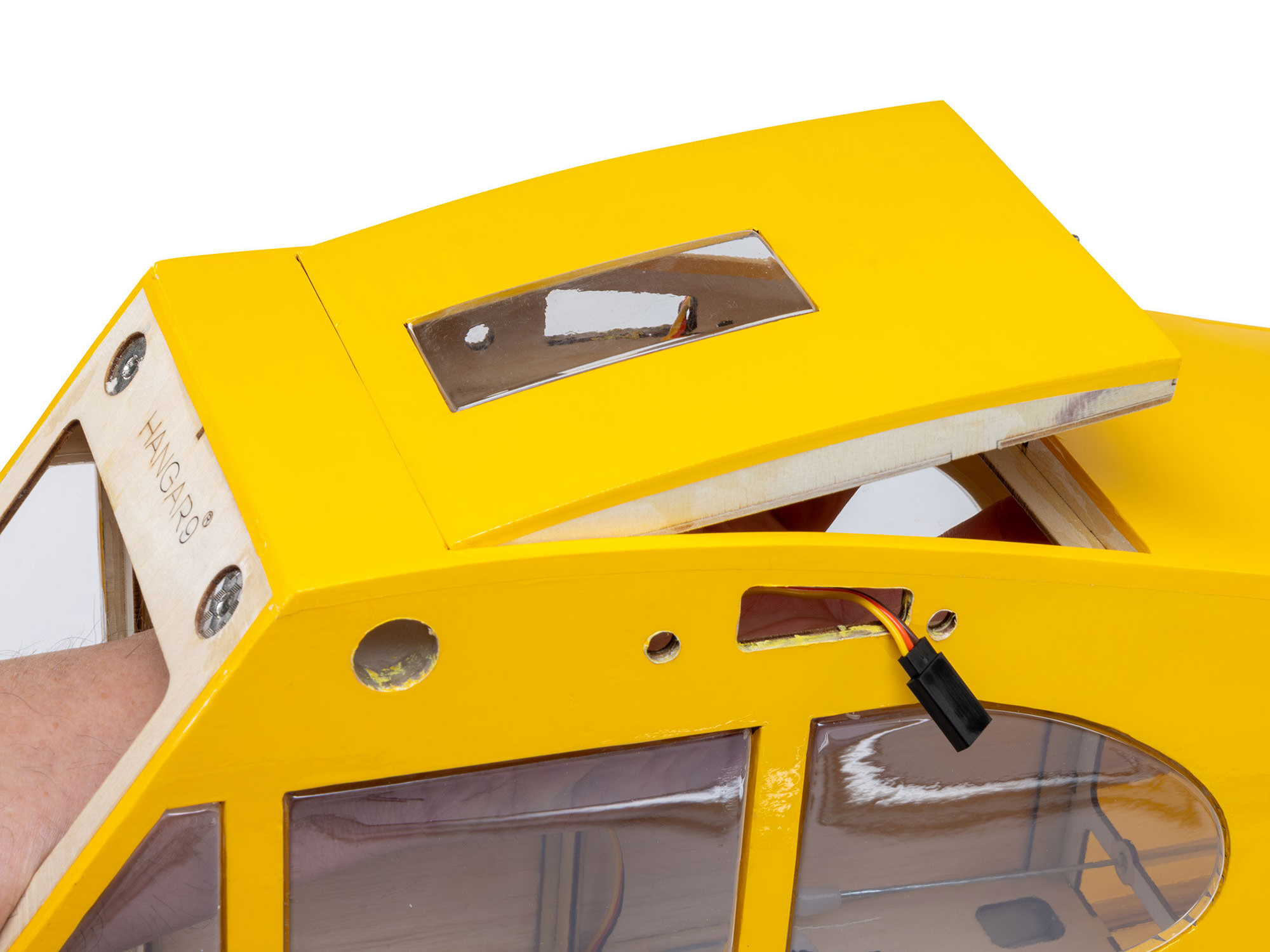 The factory-installed Spektrum Avian brushless outrunner motor is 4S to 6S compatible to offer a wide range of performance – from scale-like flying and basic aerobatics with 4S batteries using the included 15x10E prop, to much more than scale power when using the included 14x7E prop with 6S batteries! Plus, the convenient top-mounted and magnetically secured hatch cover makes it easy to install and remove common and popular 3200–5000mAh batteries.