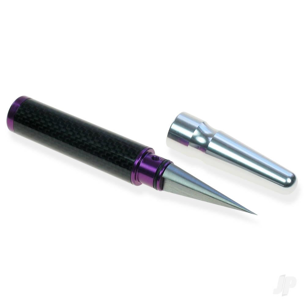 Cut holes with ease with this razor sharp and hardwearing tapered reamer. The handle is made up from a lightweight but very strong carbon fibre tube and hard-anodized aluminium. The reamer tip is very sharp and will pierce and cut holes in plastics and other such materials with very little effort so be careful when using this tool.
