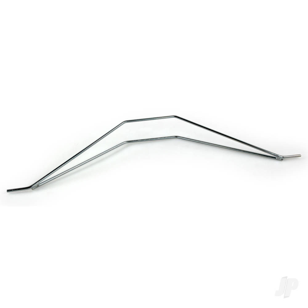 A prefabricated, fuselage mounted piano wire undercarriage that suits a variety of sport aircraft. Overall height = 108mm (to centre line of axle). Width = 380mm (between axles).