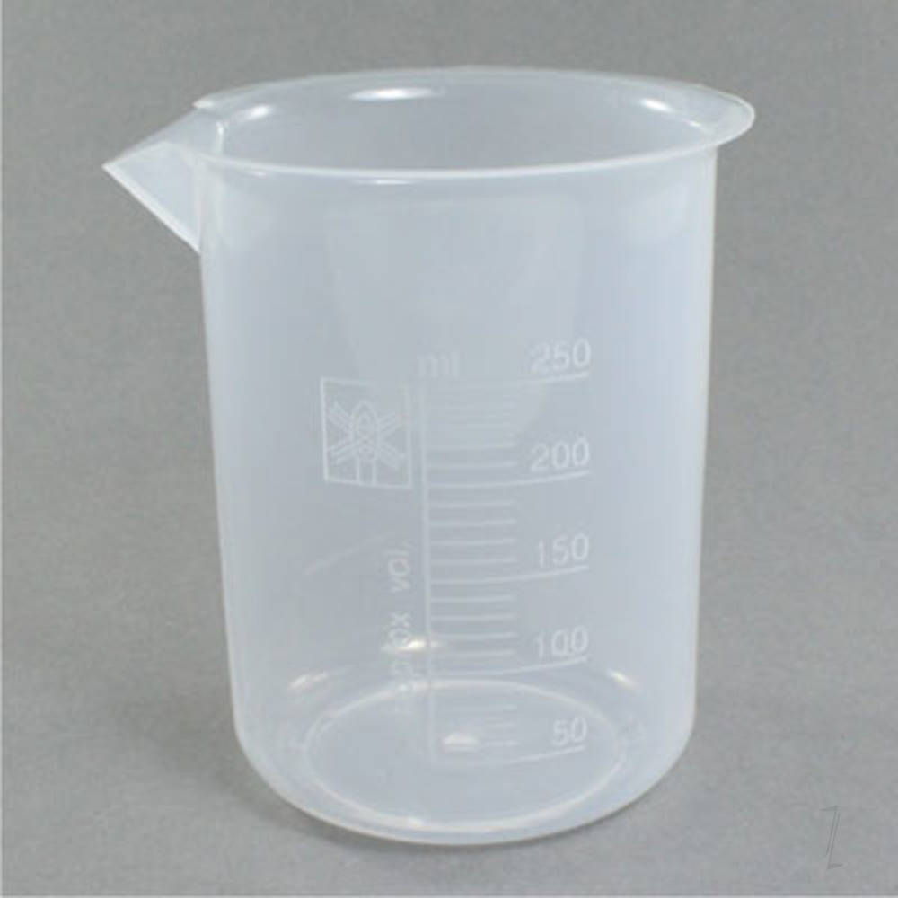 Resin measuring cup with graduated markings for accurate measurement of liquids and compounds.