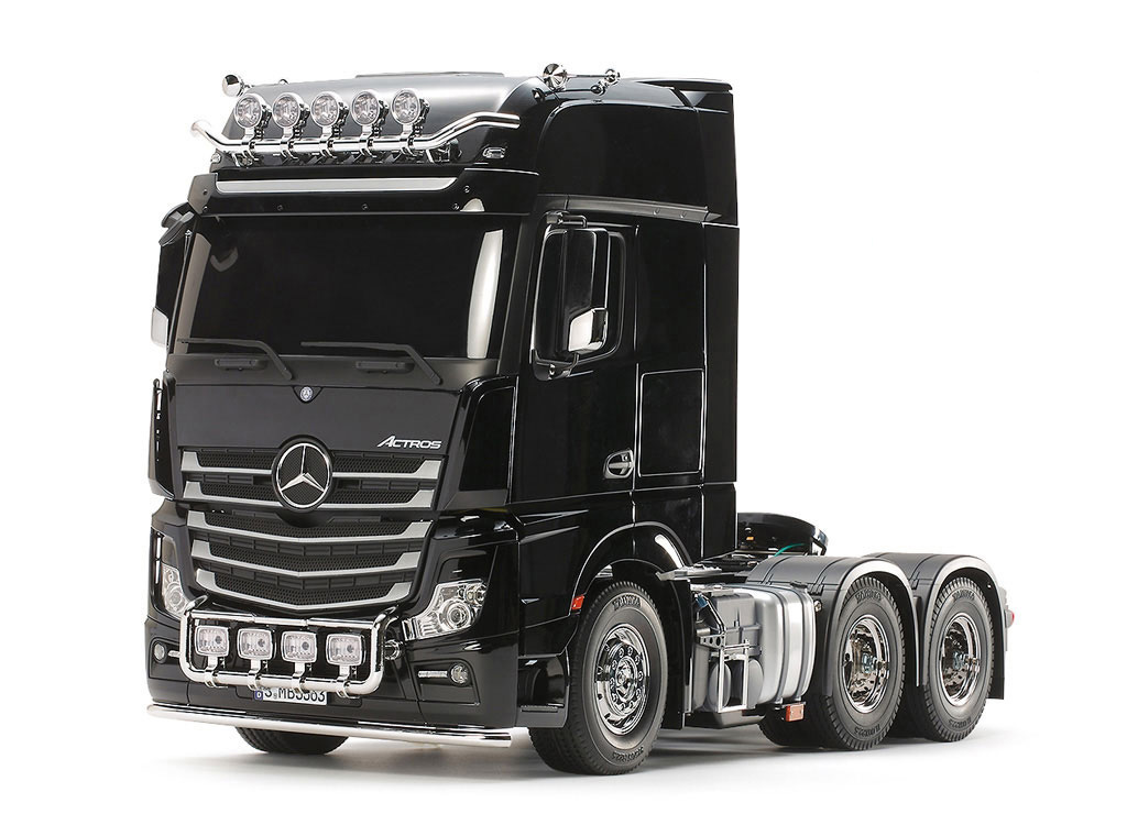 The 2012 Truck of the Year award-winning Actros series is the flagship of the world’s leading truck manufacturer, Daimler AG (Germany). This R/C model assembly kit recreates the dual rear axle-driven Actros 3363 6×4 GigaSpace model, which runs on a 15.6-litre turbocharged inline-6 engine capable of 630hp. The model’s highly detailed body breathtakingly captures the powerful form of the truck, including depictions of auxiliary lights on cab roof and bumper. Its ladder frame chassis features aluminium side channels with resin cross members, while the suspension employs leaf springs and friction dampers. An assembly type 3-speed transmission allows gear changes via separately available 4-channel transmitter.