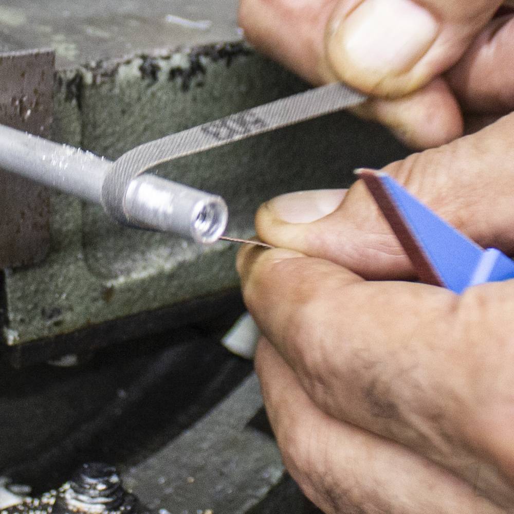 - Adjusting the thumb crew controls on the handle will allow for exact blade tension and precision.