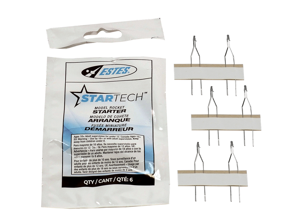 60 years ago, Vern Estes released the first commercially available model rocket motors. With it, came the Estes Starters that we all know and love. They’ve fueled the hobby for decades and are responsible for safer model rocket launches than any starter in history. When it came time to update this technology, we wanted to stay true to the simple design that made the Estes starters and motors a legendary combination, we just wanted to kick it up a notch! The new StarTech starters stay true to the design of the original, with one key addition. The small nichrome wire, the one that heats the propellant at launch, has been dipped in a specially crafted chemical compound that reacts with the heat of the wire to create a large burst of heat and pressure that ensures ignition. Never misfire again!