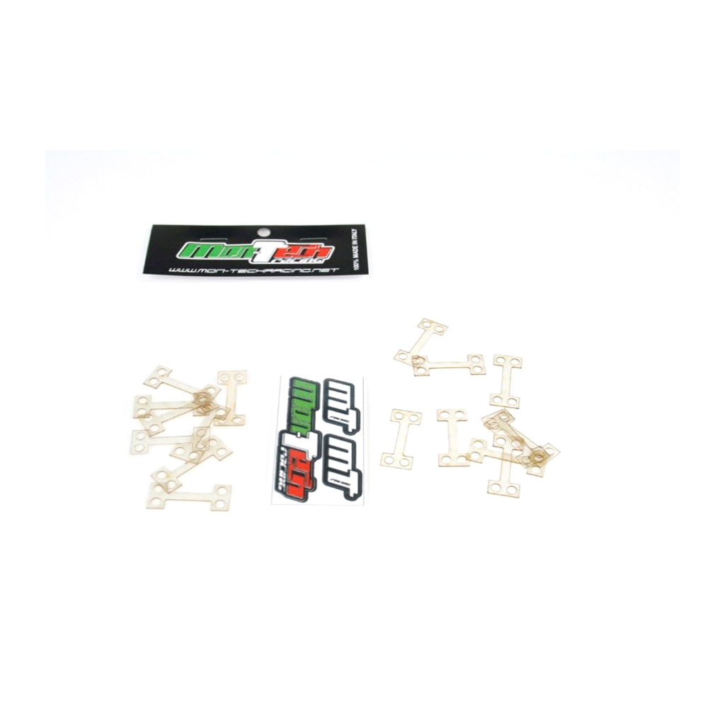 Suitable for the Xray T4 these ultra-flexible spacers are made from 0.4mm material and they can be used alone or stacked to heights of up to 1.2mm in order to lift the top deck to the preferred height. Doing so is understood to ultrafine-tune the flex characteristics of the car.