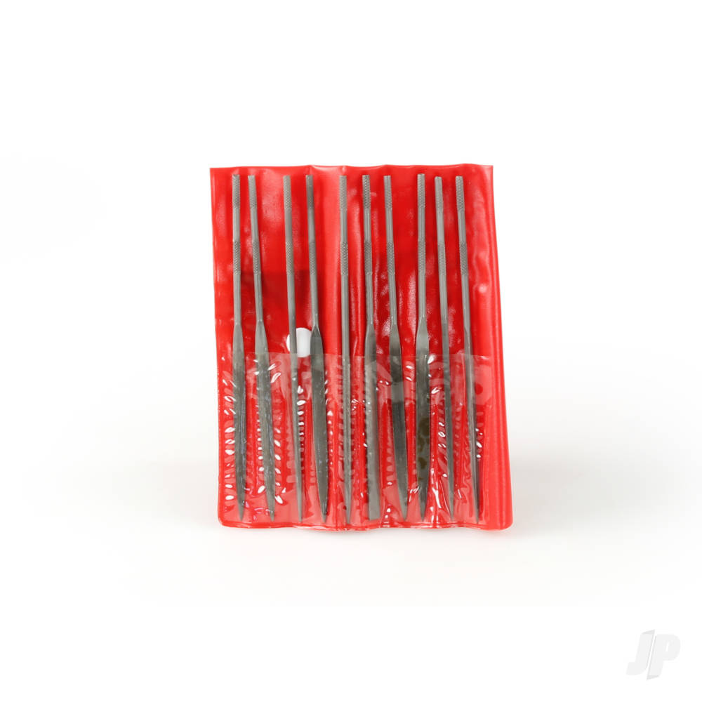 A complete set of 10 different fine jewellers files for every hobby and craft use. This file set features round handled files of tough tempered steel. Comes in a handy pouch for easy storage.