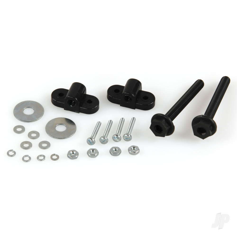 The up to date way to fasten wings to fuselage. Includes nylon bolts, and nylon threaded blacks. 1/4-20 Thread. 11 pc set. 2 sets/pkg. Weight: 18 grams/pkg