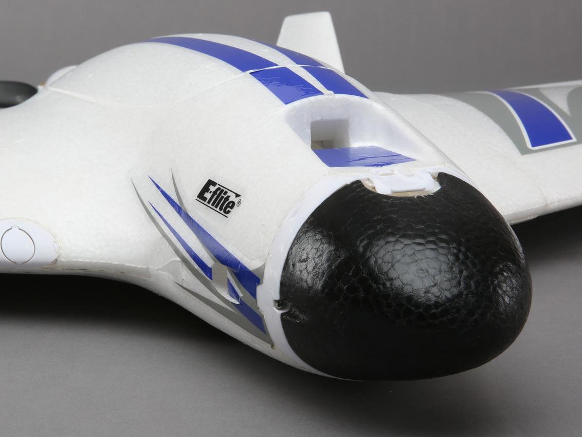 Central to the aircraft’s amazing capabilities are the advanced aerodynamics that shaped its design. In addition to its efficient airfoil, winglets and fins on the fuselage help the model track true in all kinds of air. Vortex generators near the leading edge of the top of the wing, and just ahead of the elevons on the bottom of the wing, enhance slow speed stability and control. The airframe itself is constructed of carbon-reinforced, hollow-core Z-FoamT material that keeps weight to a minimum while maintaining strength and rigidity.