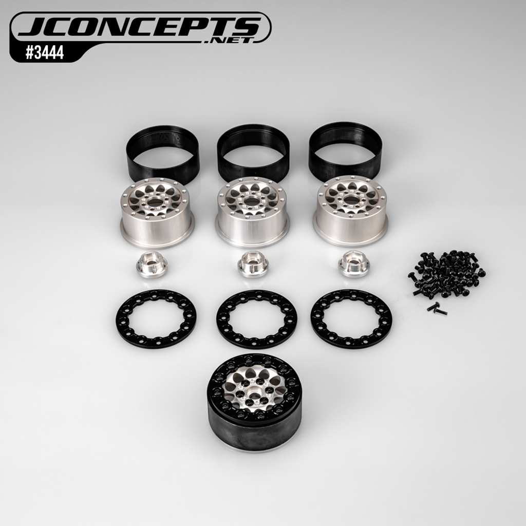 The 2.0” design inspiration which mounts directly to 1.9” tires allow maximum clearance to suspension and steering geometry giving first in class performance attributes. Optional hex adaptors allow builders and competition experts to tune trackwidth to accommodate specific rules and regulations out on the trail. The JConcepts wheels include 4.5mm hex adaptors for the most versatility with 5.5, 6.5, 7.5, and 8.5mm optional parts available to fit.