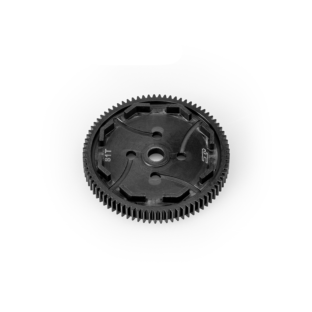 Silent Speed spur gears are precision machined making them uniquely concentric over standard or molded gears giving the user a consistent gear mesh allowing a more precise adjustment and more “silence” on the racetrack. The detailed machining provides a pattern vented area and secured slipper pad on both sides giving more consistent slipper performance. The gears are marked for size, so they are identifiable unassembled. Silent Speed spur gears are also branded with the small JC logo for brand identification and authenticity.