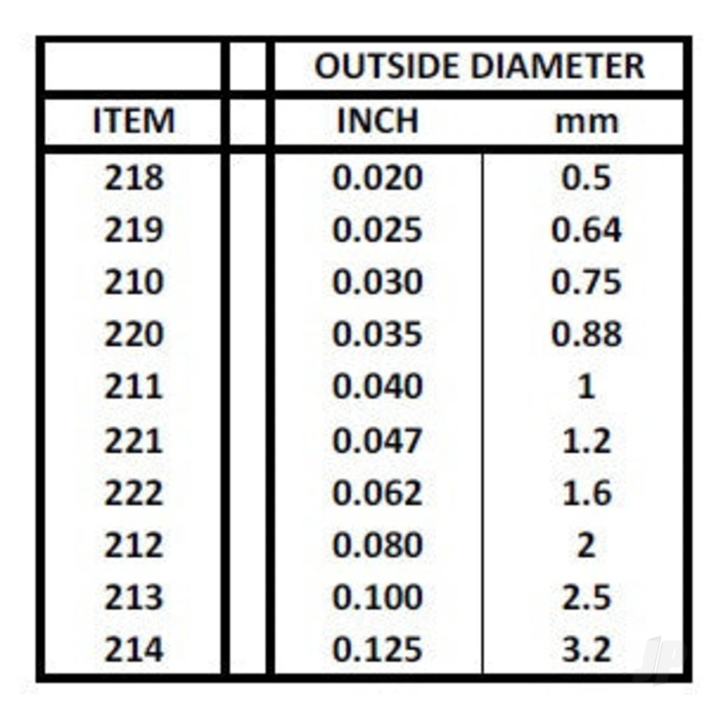 • Rod diameter: 0.75mm (.030in), 1.0mm (.040in), 2.0mm (.080in), 2.5mm (.100in), 3.2mm (.125in)