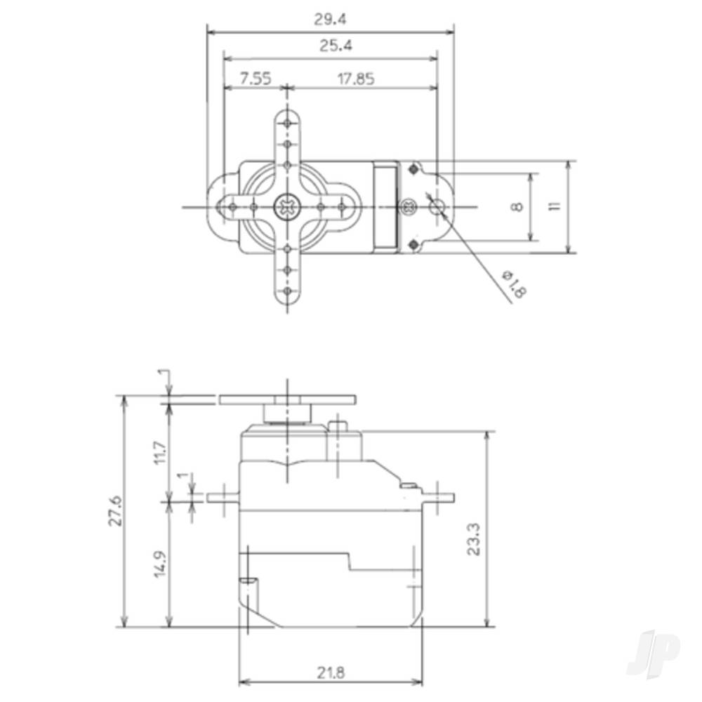 - Excessive force or shock to the servo horn may damage the ultra mini precision gears inside the servo.