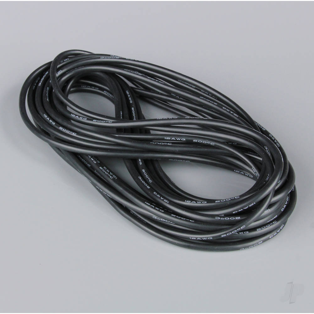 Silicone Wire, 12AWG, 680 Strand, 25ft / 7.5m Black (on a roll)
