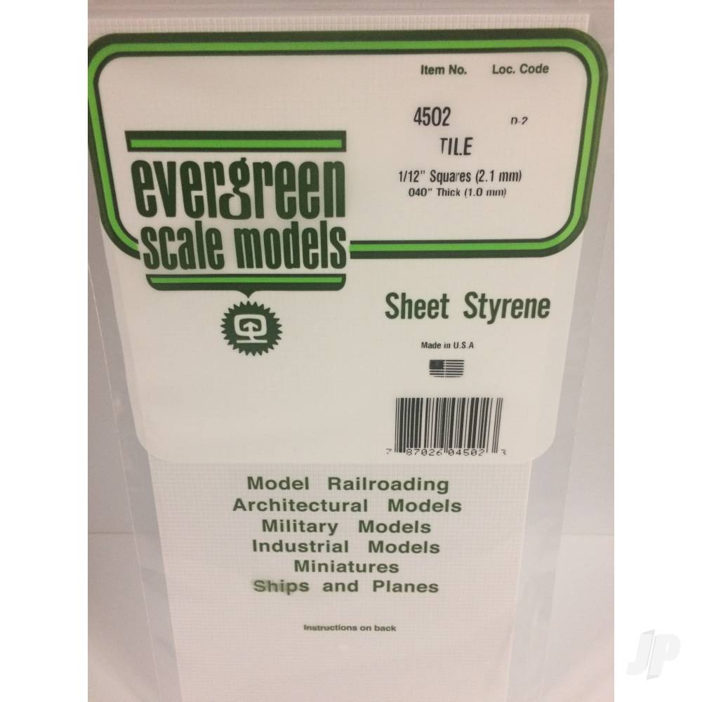 Evergreen Square Tile Sheet, 300 x 600 x 1.0mm, 2.1 x 2.1mm Spacing (12 x 24 x .040in, .083 x .083in Spacing) (1 per pack)