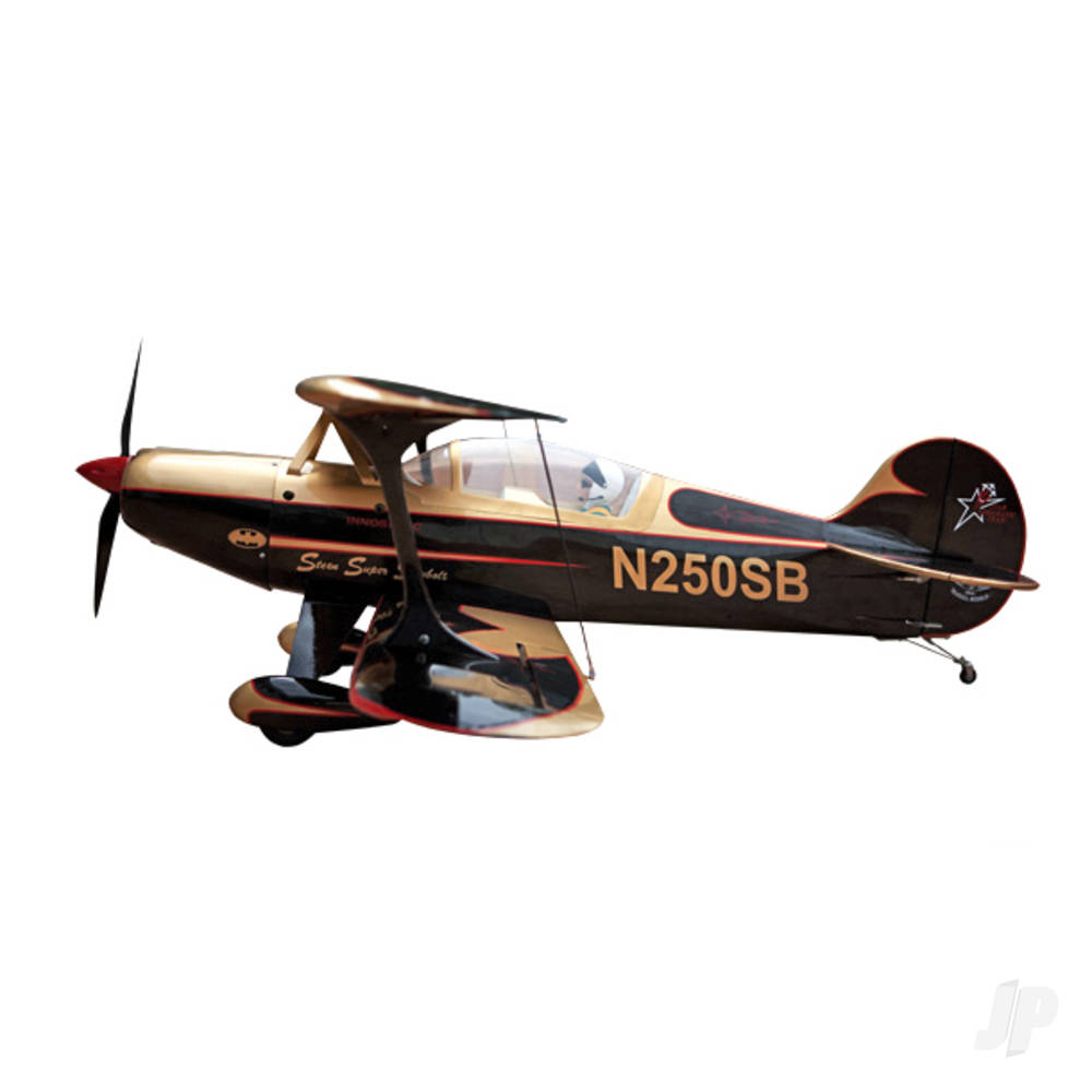 Presented in an eye catching colour scheme this 61′ span high quality balsa / ply ARTF comes factory covered in genuine gloss finish Oracover film and features a detailed cockpit, pre-painted glass fibre cowl and spats, a tough two-piece painted undercarriage, all the necessary hardware for either glow or electric power and, crucially, stunning good looks.