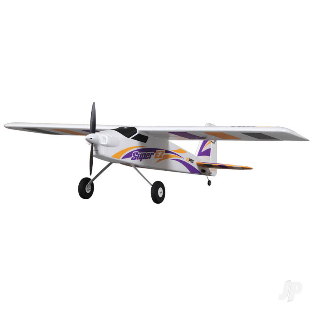 Featuring a large, high-wing design constructed from lightweight EPO foam, the Super EZ offers ultra-low wing loading and stable flight characteristics. These features provide beginner pilots with excellent handling, even at low speeds. An upgraded brushless power system and propeller deliver ample thrust while maintaining flight times of 10 to 15 minutes. The high-strength, lightweight metal landing gear is built to absorb even the hardest landings.