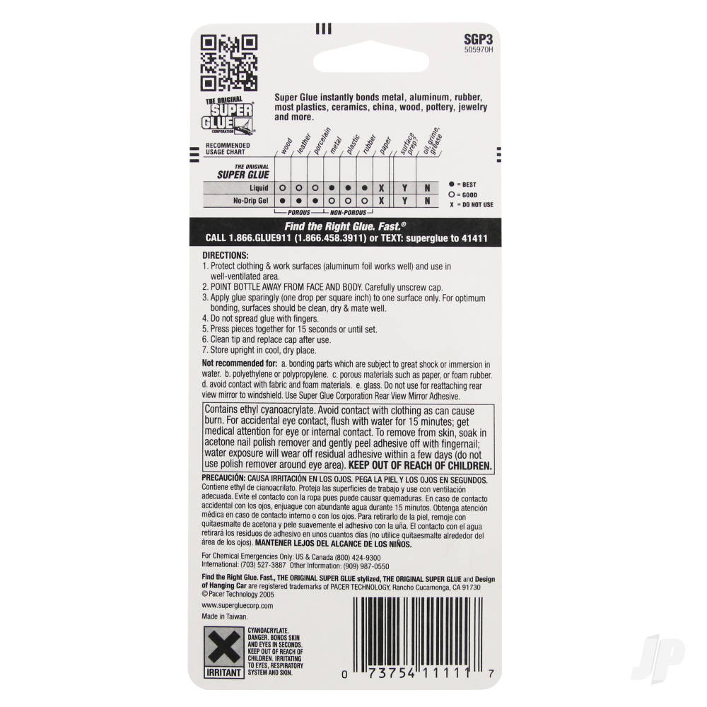 Original formula Super Glue forms the strongest bonds in tight joints between clean breaks or smooth surfaces. Best used with non-porous application parts such as metal and rubber. The glue bonds instantly and sets in seconds! Packaged in a spill-resistant bottle with a flow control nozzle allowing for one-drop-at-a-time application. The extra slim card is perfect for tight displays, end-caps and clip strips.