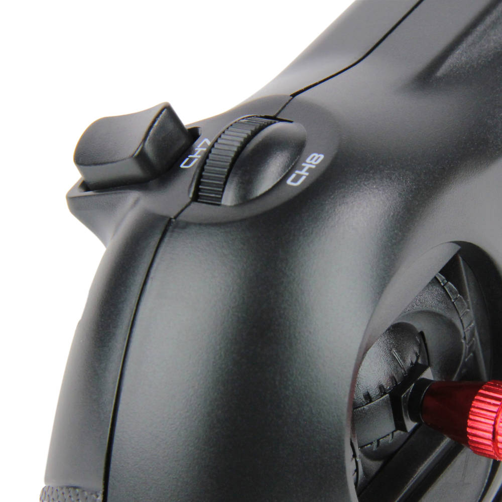 Don’t let the size of this clever little full range, 2.4GHz transmitter fool you. It is, to coin a popular idiom, a wolf in sheep s clothing. Seeming – at first glance – like nothing more than a basic four-channel game-style transmitter you have to take a closer look to understand its true power. Boasting 8 real channels (operated by regular dual-axis gimbals, plus additional switch-, dial- and button-operated functions) the T8S is both versatile and sophisticated. Equipped with FHSS frequency-hopping spread spectrum protocol that offers a superior transmission rate, enhanced interference rejection and a secure full range capability, the T8’s versatility comes in its ability to operate anything from a small two-channel yacht to an 8-channel warbird with retracts, flaps two auxiliary functions and even programmable mixing. That’s outstanding at this price point and it’s all done via an easy-to-use bluetooth smartphone app that’s free to download for both Apple and Android phones. By storing multiple model memories on your smartphone the T8S becomes as powerful as any entry-level 8-channel computer radio yet, of course, it takes half the space in your flight-box or rucksack.