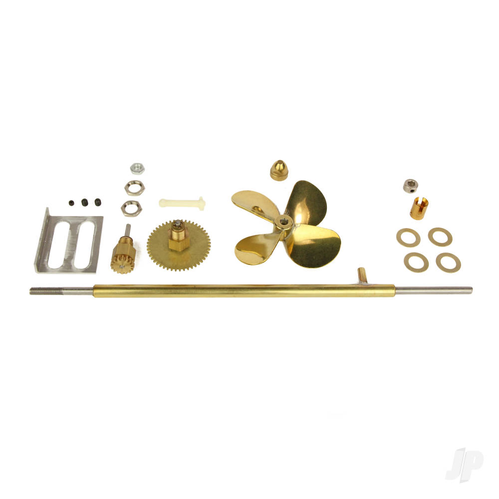 A single screw gear drive line for powering the Brooklyn Tug and similar models. For use with one Dumas #2004 motor.