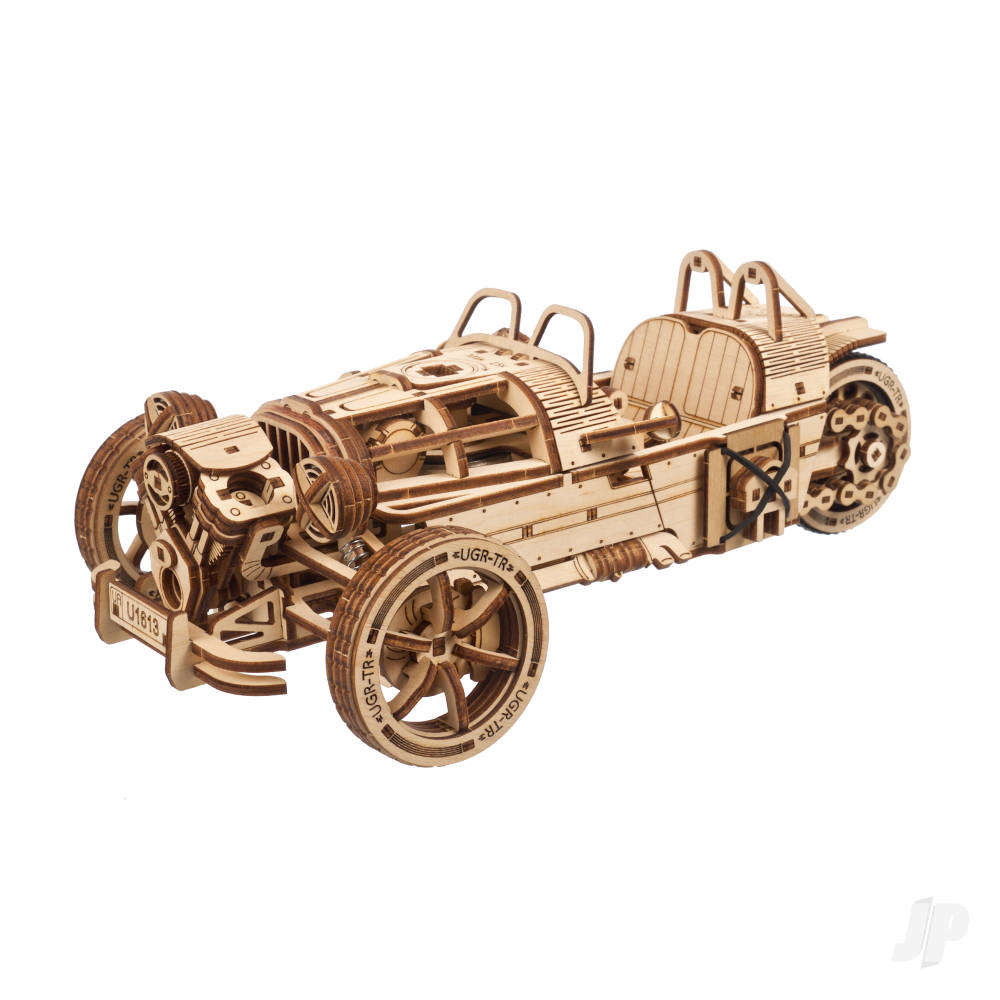 Turn heads at home or at the office with this stylish three-wheeled roadster. This DIY Three-wheeler UGR-S model is a great gift for anyone who loves motorcycles, classic automotive design, or who loves automobile modelling. Own the road on just three wheels with the UGears Tricycle Roadster!