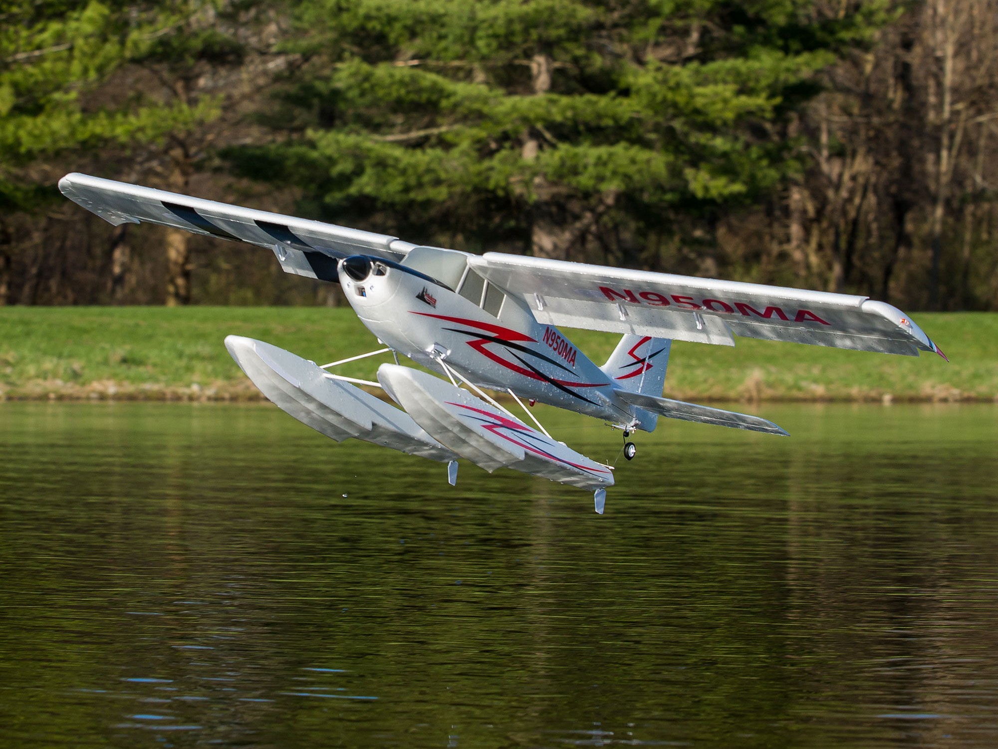 Thick grass, gravel paths, dirt trails — even local lakes and ponds — you can fly off these and many other surfaces that are impossible for most models of this size to handle. The stronger, reinforced mounts in the fuselage, combined with shock-absorbing landing gear equipped with heavier-duty springs, absorb the bumps of rough surfaces and not-so-great landings. The oversized, tundra-style wheels and tires provide excellent prop clearance, and the included float set features dual water rudders for superb steering control. Whichever gear option you choose to fly with, you can install both easily and swap them out in minutes.