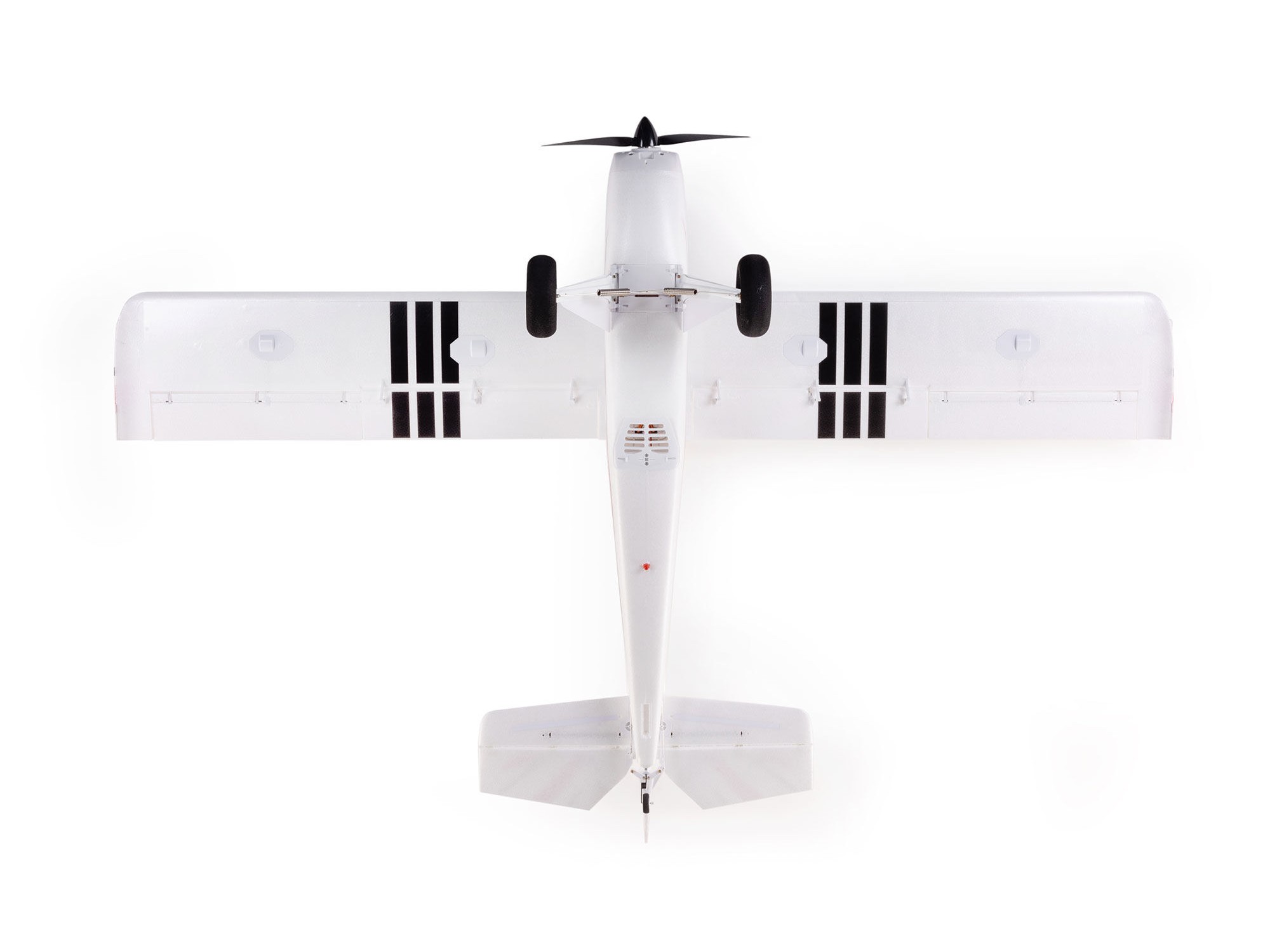 The Timber’s wing incorporates features like drooped wingtips and functional slotted flaps, and accepts the optional-use leading edge slats (included) for improved slow flight and STOL performance. These features, along with the lightweight design and high-power brushless motor, make it possible to spring into the air or float down to land in as little as a few feet or less.