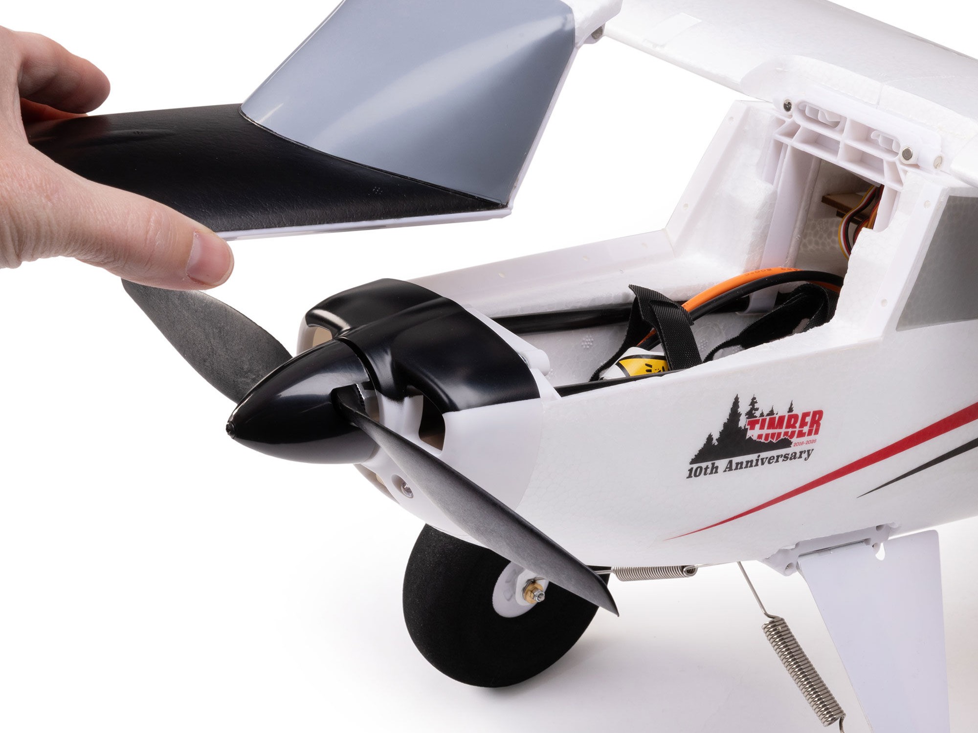 This Special Edition of the Timber 1.5m celebrates the 10th anniversary of the first-ever Timber that kicked off one of the most popular and best-selling series of RC aircraft of all time! It features the same short-nosed look and trim scheme as the original. However, it now includes all the modern conveniences, features, and technologies found in current Timber models – including a top-mounted hatch, stronger landing gear mounts and heavy-duty springs, plus many more that make it better than ever.