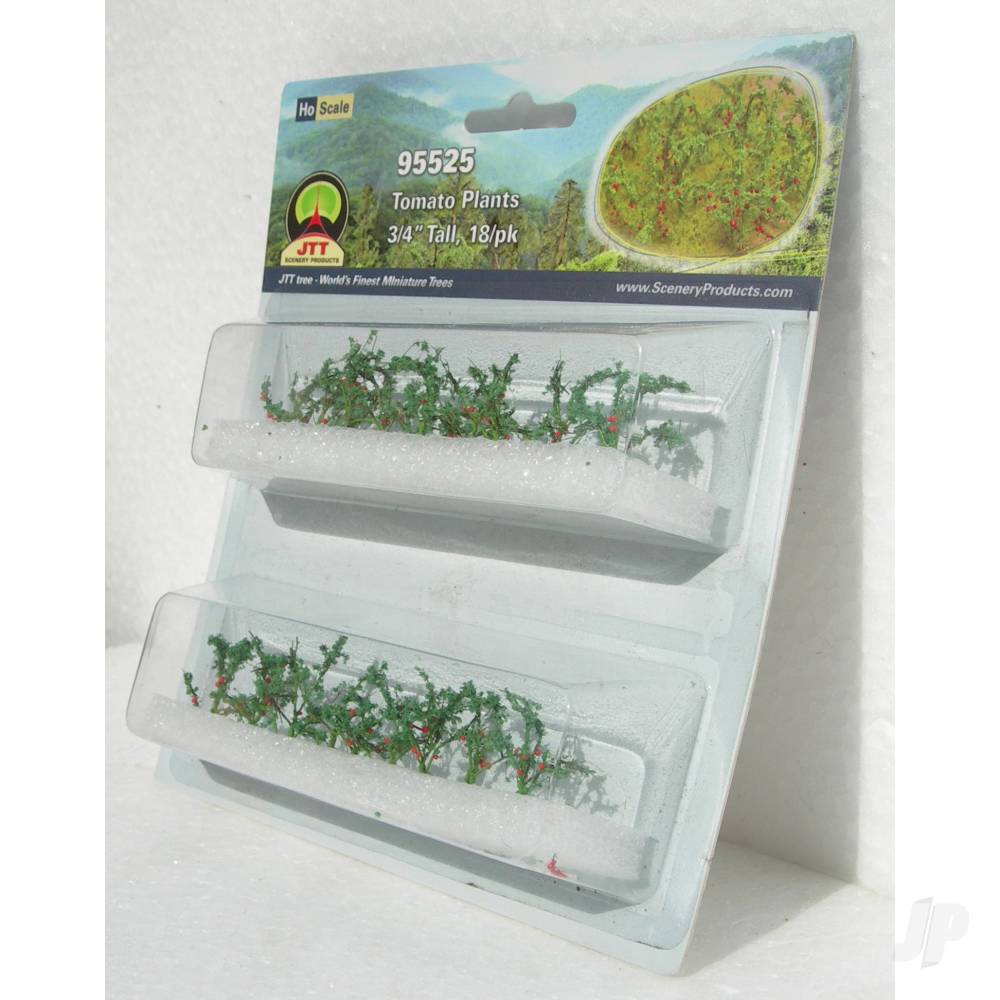 These scale tomato plants, in full-season bloom, will add another dimension to your layout. Leaves and vines are carefully contoured, tomatoes are luscious red and juicy looking. Plant them in rows or individual to brighten just about any scene. For more realism, create a wire cage around them or stake the plant with wooden supports, or plant them in a miniature flower pot.