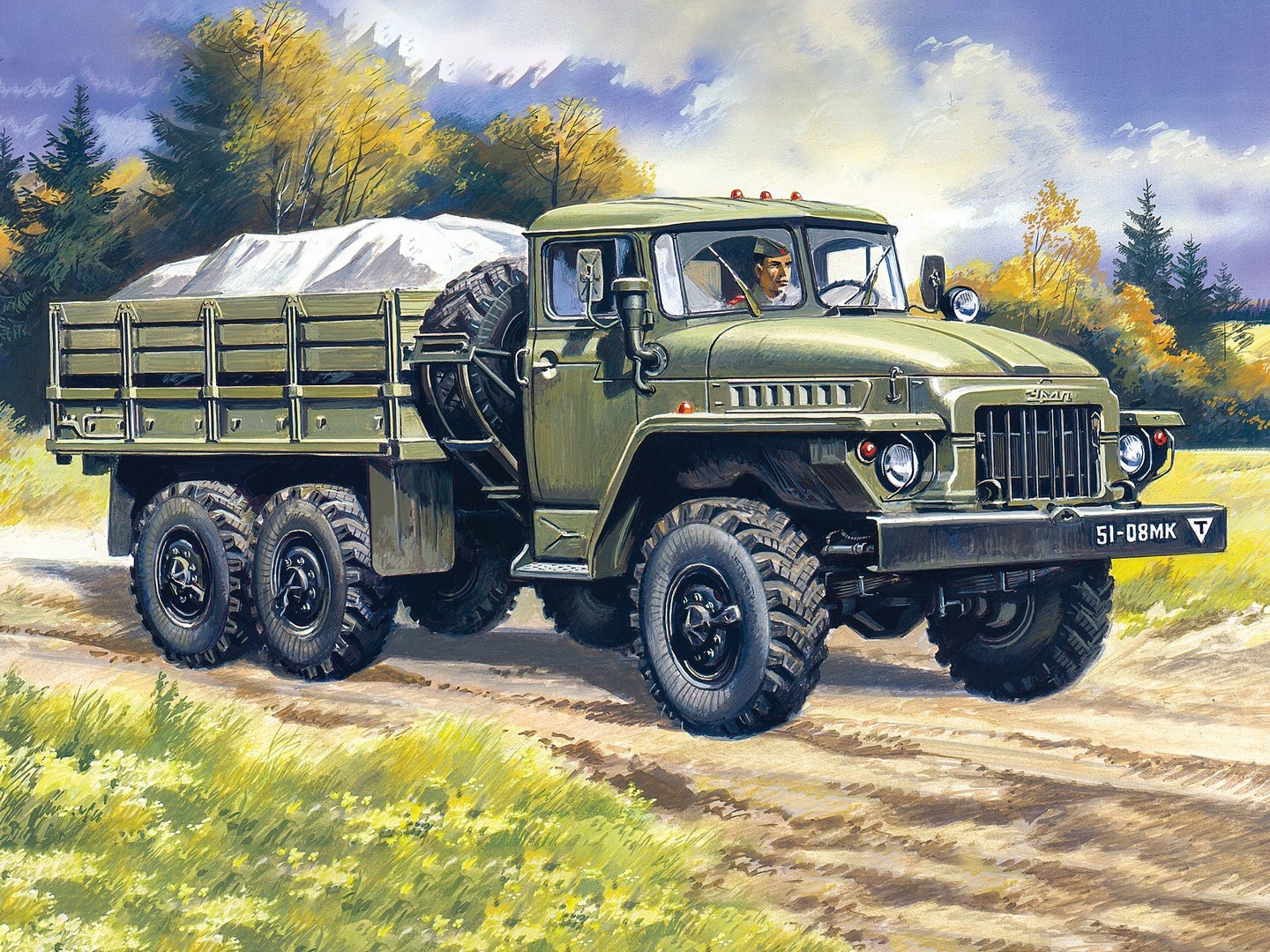 The Ural heavy truck was the standard 6×6 wheel vehicle of 5t capacity for the Soviet Army. The modification Ural-375D was produced since 1964 in Miass. These vehicles were very popular with the army because of their robust construction and fantastic cross-road capabilities. The Ural-375 chassis was used as the base for various special vehicles, such as command mobile posts, radio and radar stations, transport and launchers for anti-aircraft missiles, fuel bowsers and multiple launch rocket systems. Ural-375 vehicles were in service with Soviet and Warsaw Pact armies, armed forces in Africa, Asia and the Near East.