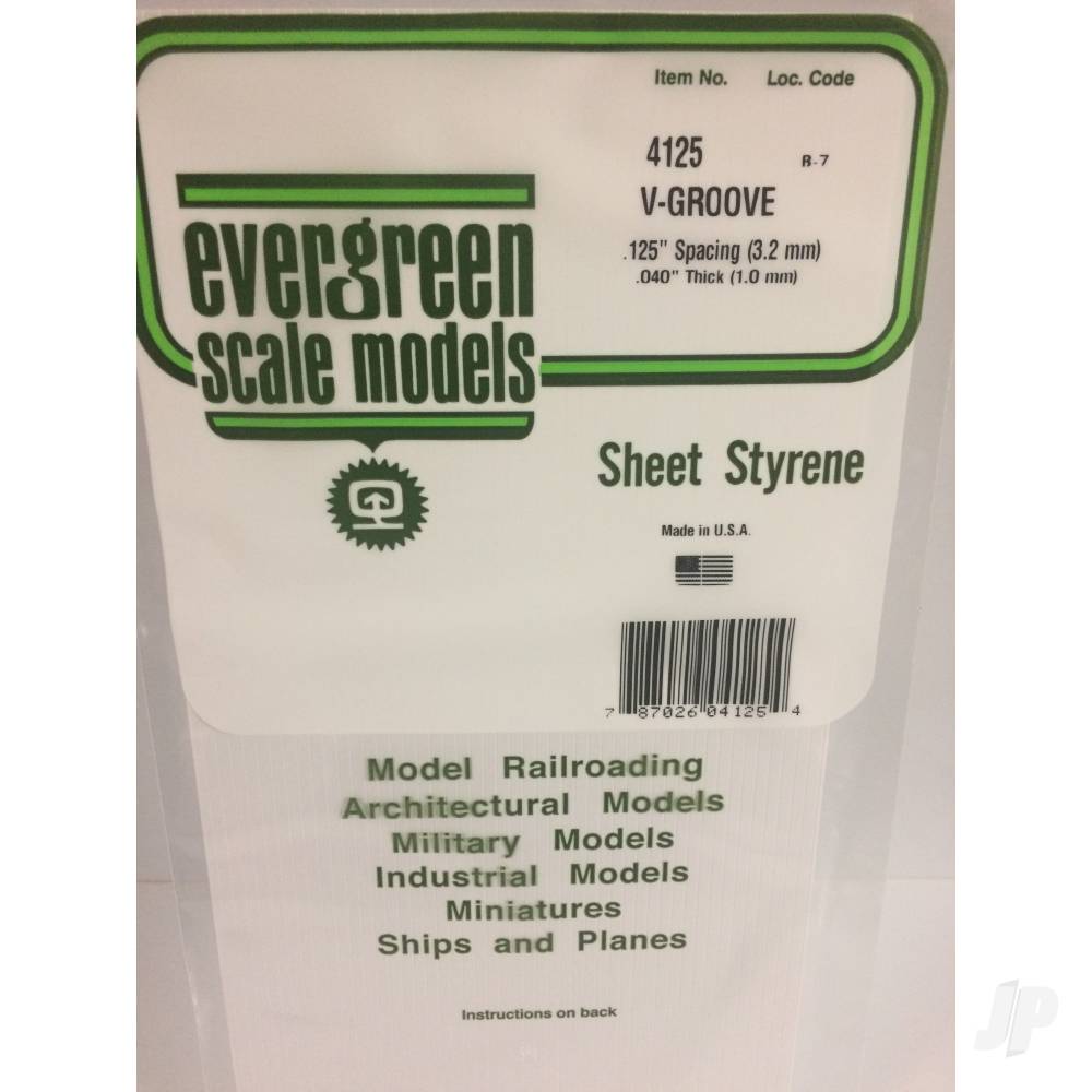 Evergreen V-Groove Siding Sheet, 150 x 300 x 1.0mm, 3.2mm Spacing (6 x 12 x .040in, .125in Spacing) (1 per pack)