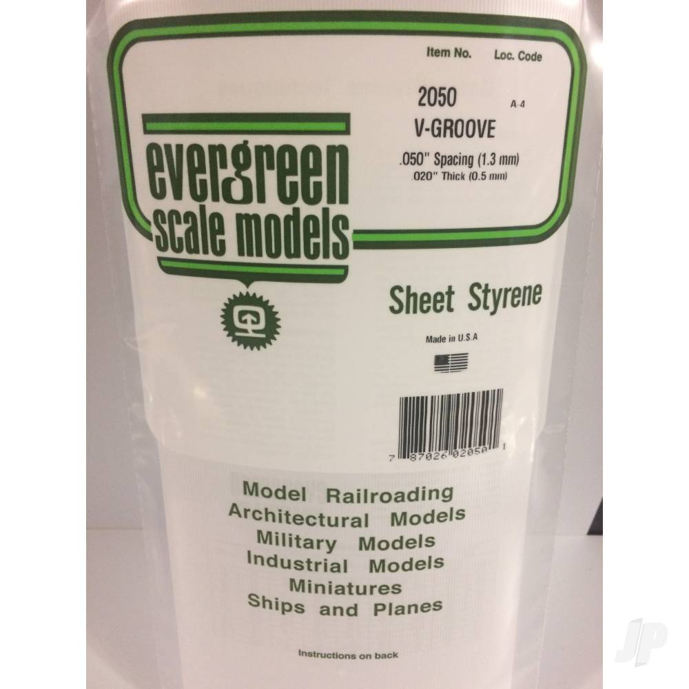 Evergreen V-Groove Siding Sheet, 300 x 600 x 0.5mm, 1.3mm Spacing (12 x 24 x .020in, .050in Spacing) (1 per pack)