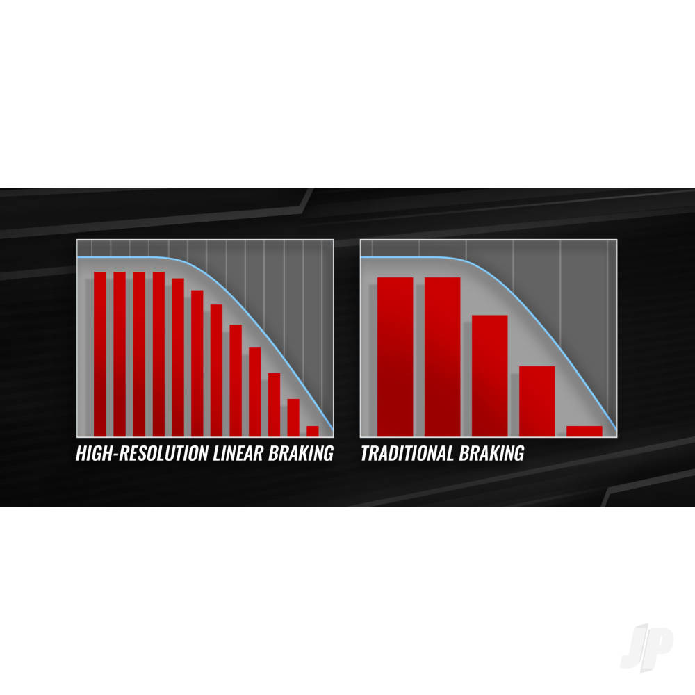 Velineon VXL-4s High-Resolution Linear Braking is a patent-pending Traxxas innovation that delivers next-level smoothness and precision. The High-Resolution communication loop allows instant response to the driver’s input for powrful and intuitive linear braking feel. From feather touch speed correction to full-power late braking to overtake on the inside line of a corner, the driver stays fully connected and in control for a competitive edge on the track. The optional Traxxas Link app adds easy control over brake force to tune for different needs and conditions.