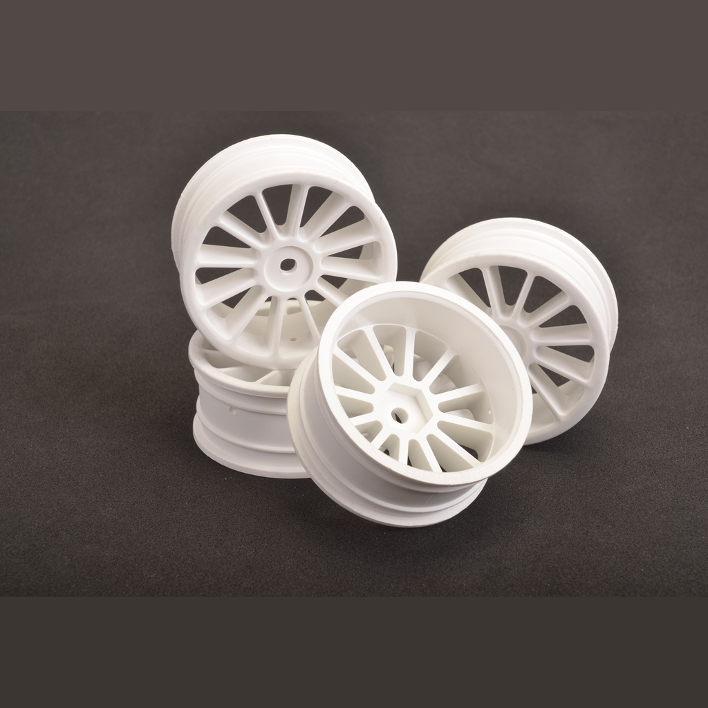 Lovely 12 spoke Touring car wheel with Standard Offset in white.