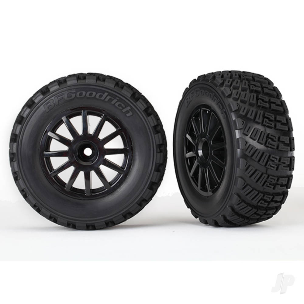 Wheels & Tyres, assembled, glued (black wheels, gravel pattern Tyres, foam inserts) (2) (TSM rated)