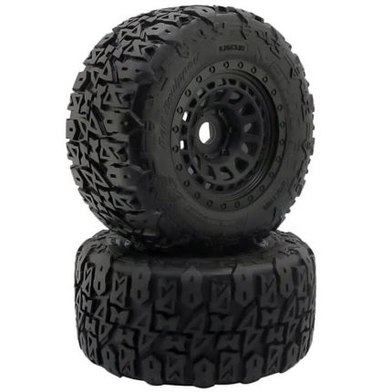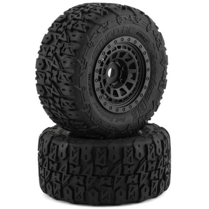 PROLINE STREET FIGHTER 3.8″ BELTED TIRES MOUNTED ON RAID BLACK WHEELS 8×32 HEX 17MM